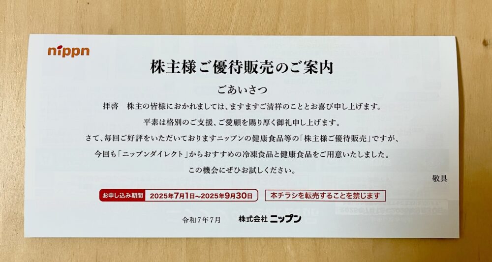 優待割引販売、自社商品詰め合わせがもらえる、ニップンの株主優待を紹介します。