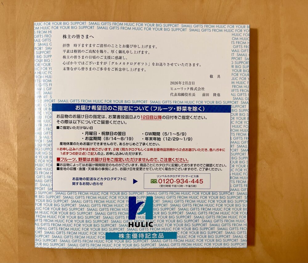 カタログギフトがもらえるヒューリックの株主優待を紹介します。
