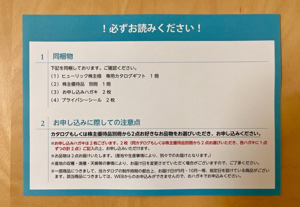 2025年12月末から保有期間2年以上の継続保有条件が付きますのでご注意ください。(優待品は3,000円カタログ×2になります)