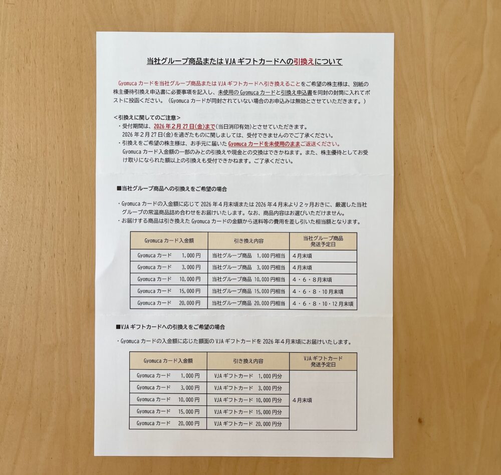 優待内容:JCBギフトカード ⇒ Gyomucaカード(2025年から)