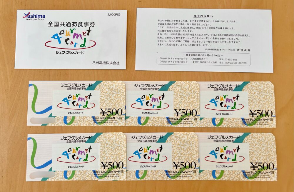 ジェフグルメカードがもらえる八洲電機の株主優待を紹介します。