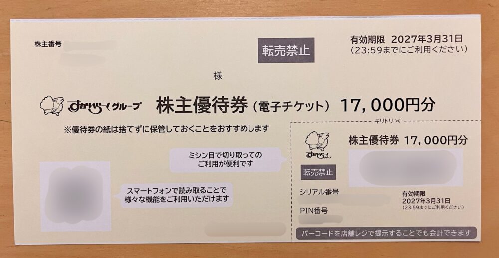 17,000円分、嬉しいです!ガストで豪遊できます。