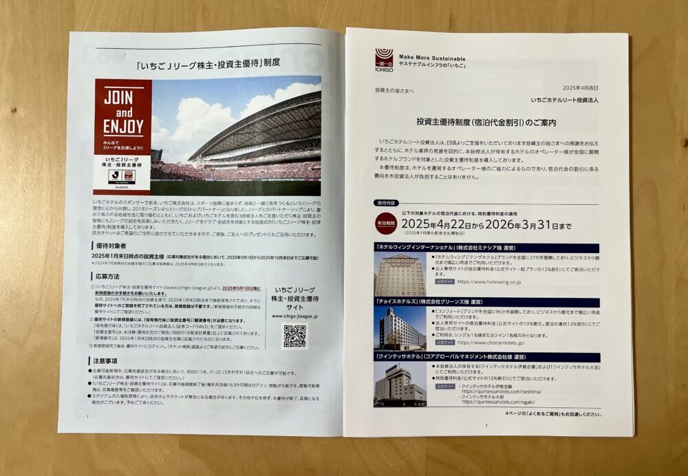 「いちごJリーグ株主・投資主優待試合チケット抽選」に参加できる、いちごホテルリート投資法人の株主優待を紹介します。
