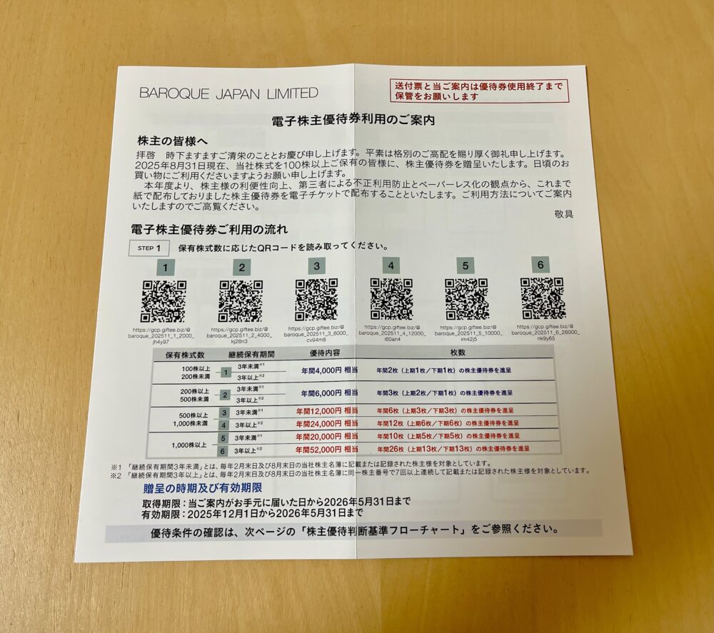 自社店舗および通販サイトで使える優待券がもらえる、バロックジャパンリミテッドの株主優待を紹介します。