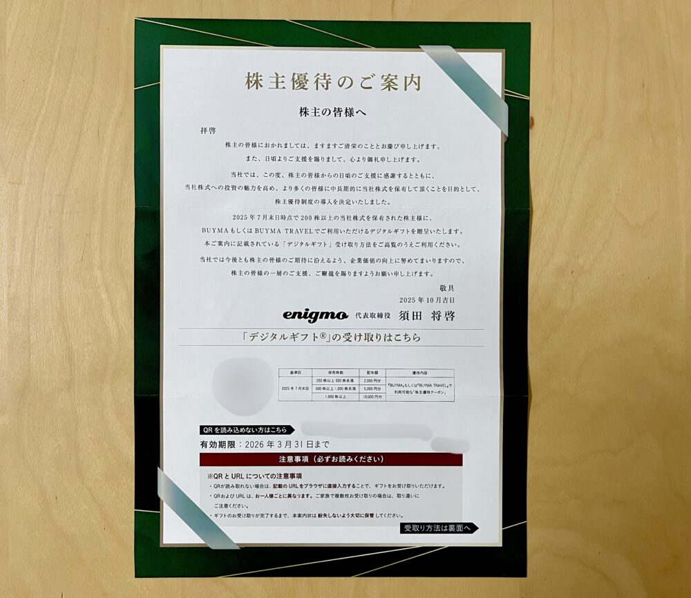 BUYMAクーポンがもらえる、エニグモの株主優待を紹介します。