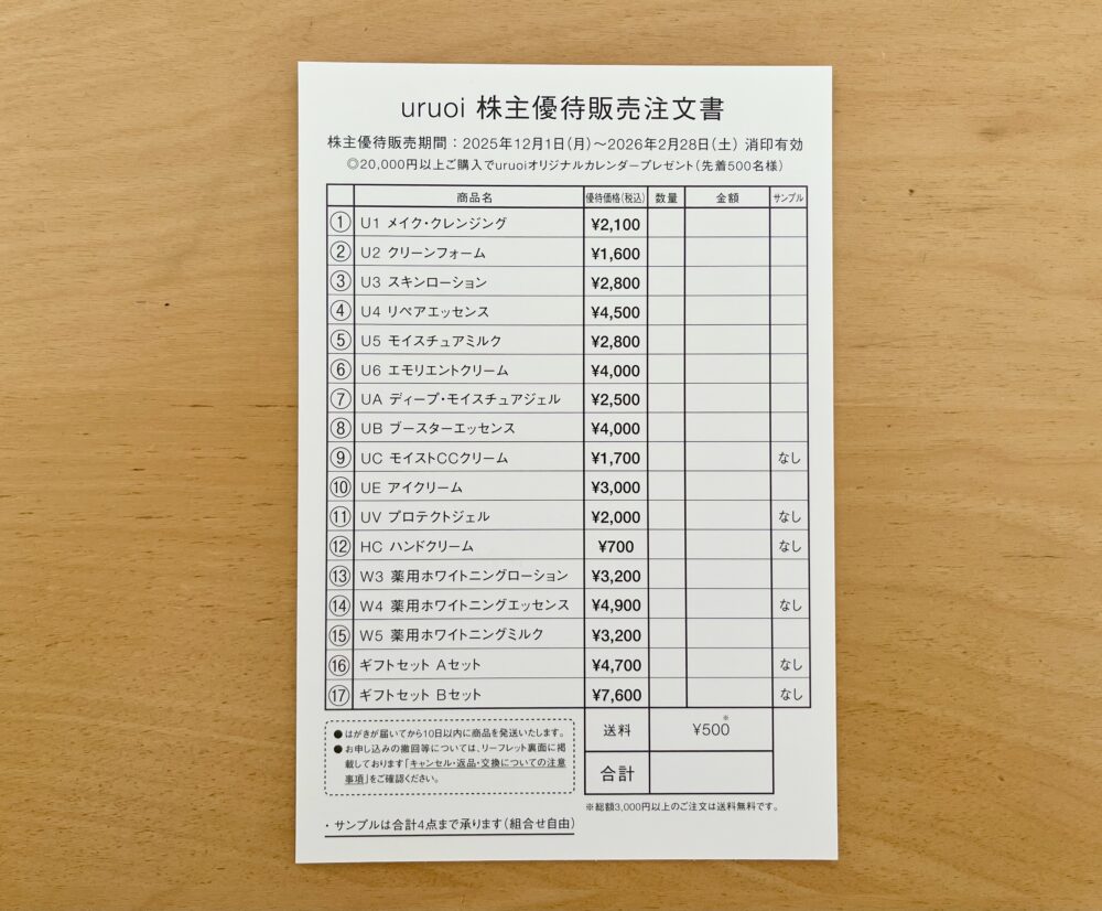 | 1株以上 | 自社化粧品の優待価格販売 |