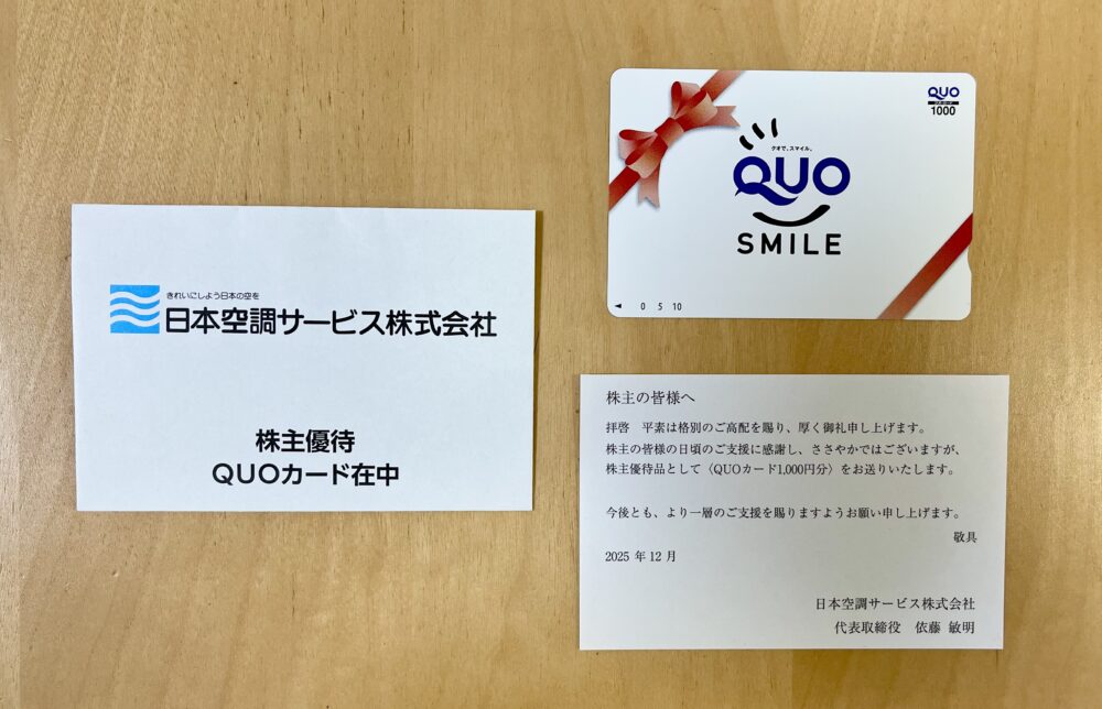 クオカードがもらえる、日本空調サービスの株主優待を紹介します。