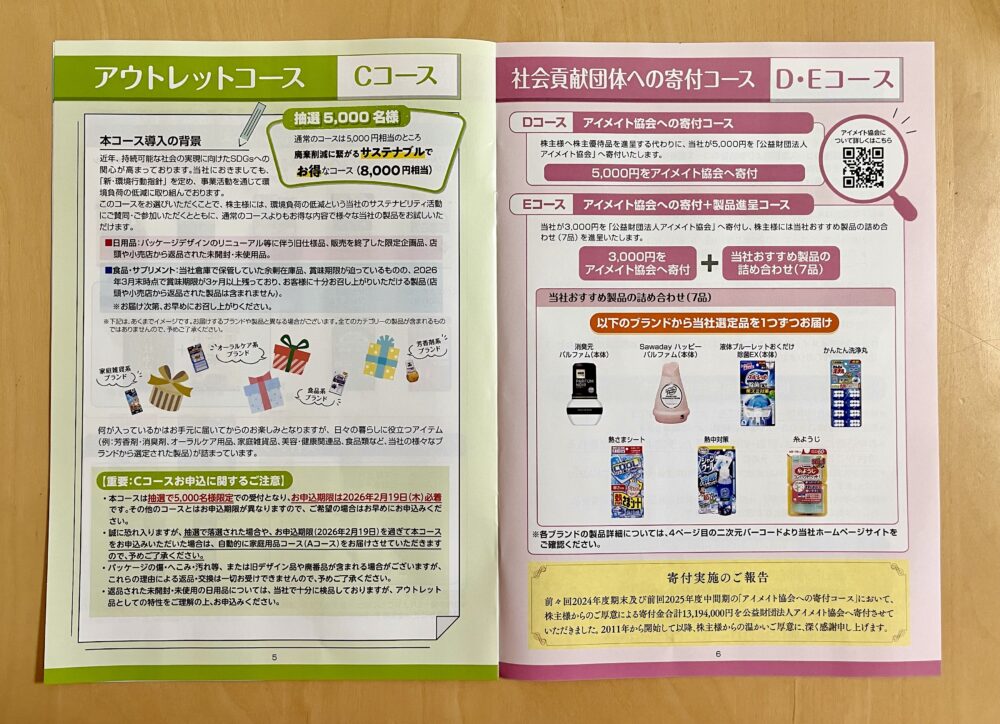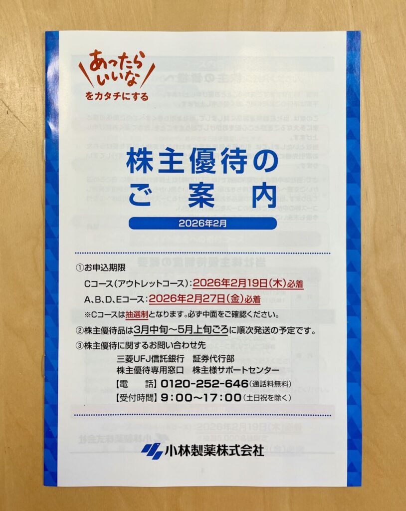 2月上旬に優待案内到着、4月上旬に優待品到着