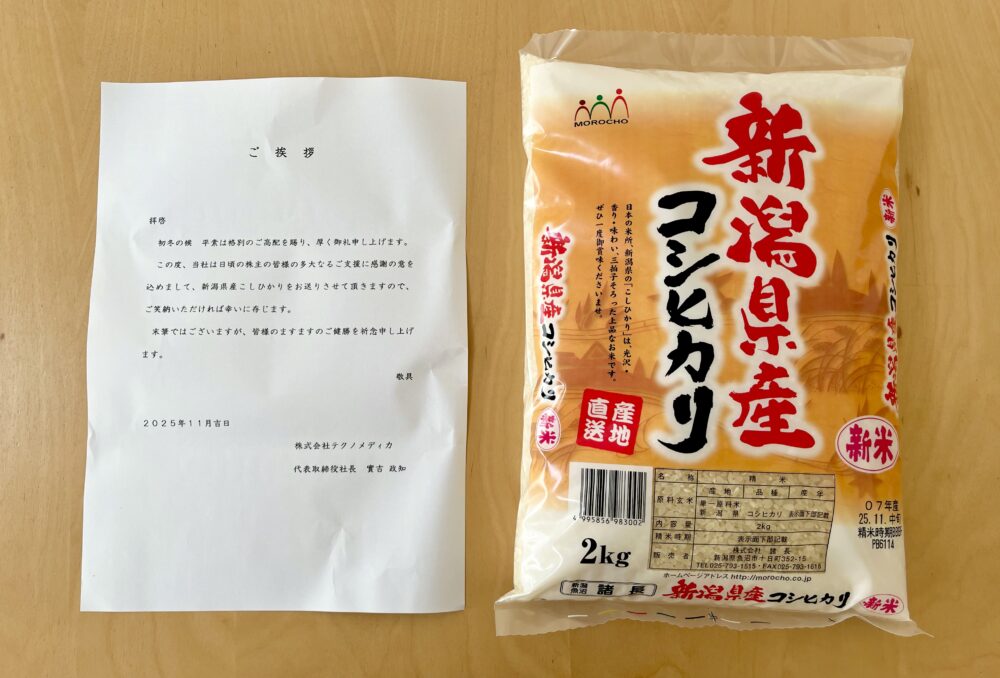 お米がもらえる、テクノメディカの株主優待を紹介します。