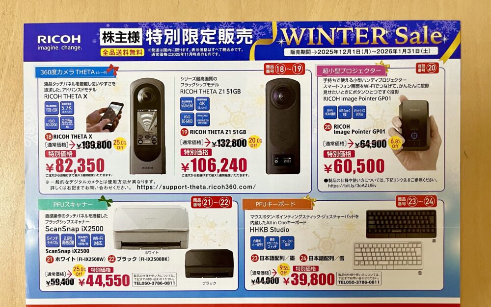 自社カメラ製品等特別価格販売がもらえる、リコーの株主優待を紹介します。