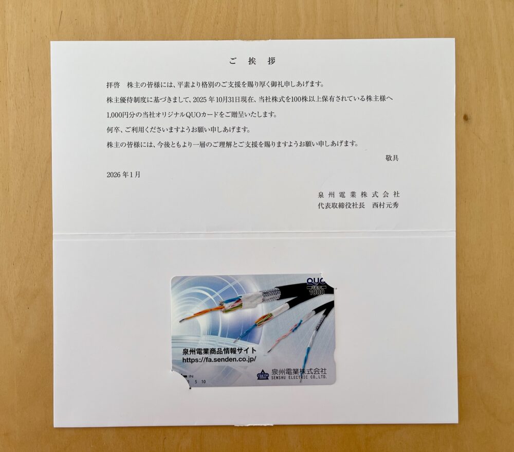 クオカードがもらえる泉州電業の株主優待を紹介します。
